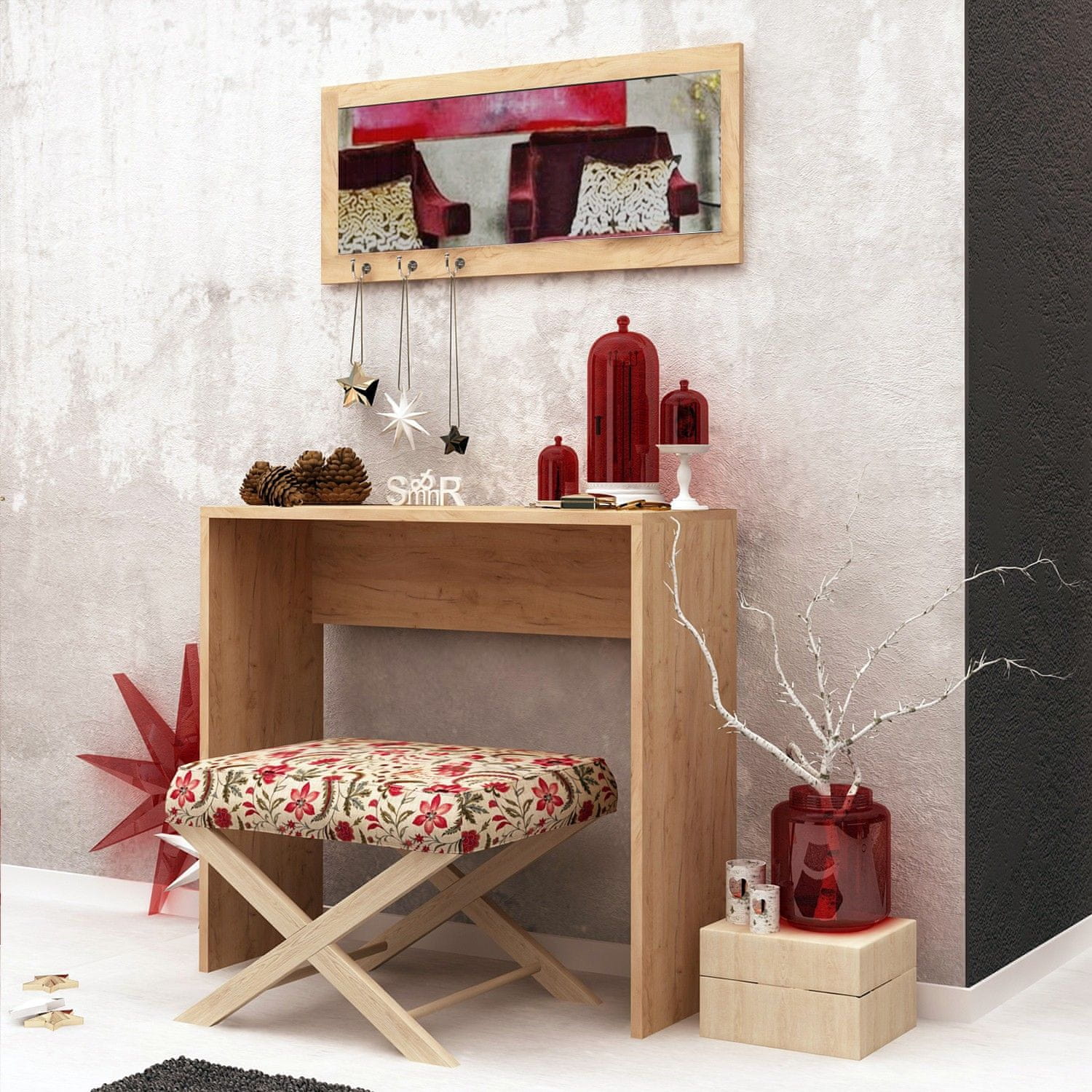 100 % MELAMINSKO PREVLEČENA IVERNA PLOŠČA Debelina: 18 mm Velikost bočne deske: Širina: 80 cm Višina: 82 cm Globina: 30 cm Viseči obešalnik za ključe Velikost: Širina: 80 cm Višina: 30 cm Lahko se pritrdi na steno