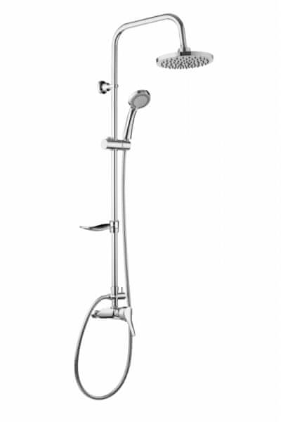 Sestavni deli: – stenska letev 855 mm (okrogla rozeta) z drsnikom za tuš, nastavitev višine z ročajem, nastavljiv kot naklona, možnost montaže na desno ali levo – izravnalna blazinica za ploščice (5 mm) – ročna prha z normalnim curkom – cev za tuš 1600 mm.