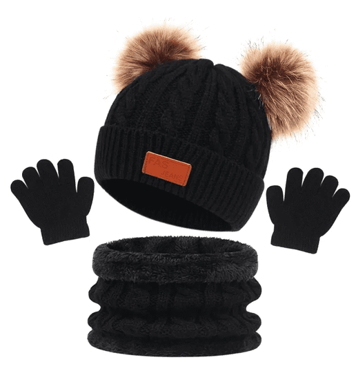 Camerazar Otroška topla 3-delna komplet - kapa, šal in rokavice, črna, 100 % akrilna vlakna