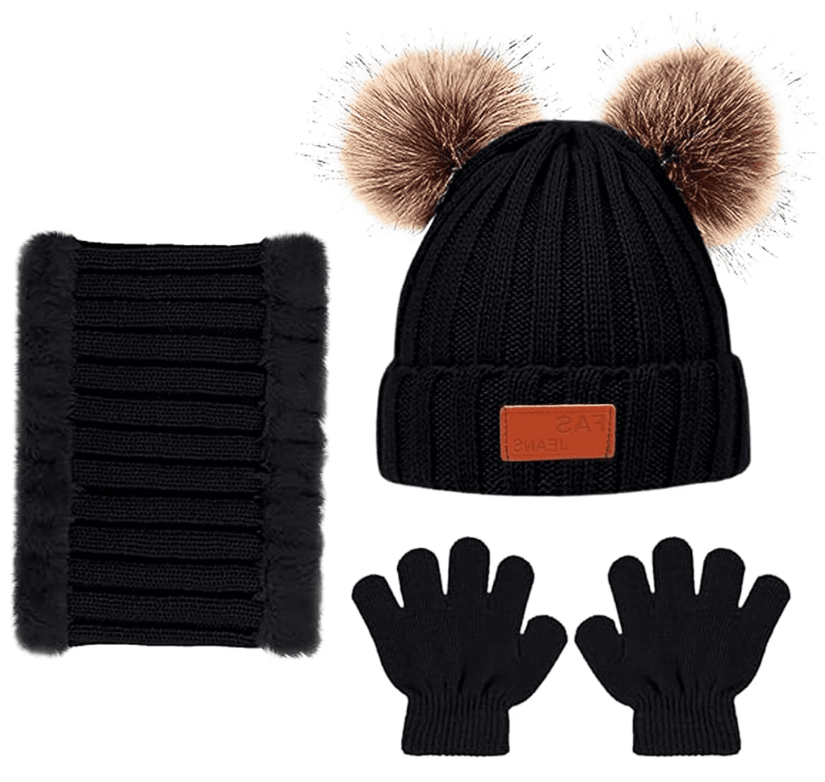 Set v univerzalni črni barvi se enostavno prilega k kateri koli obleki in je idealen za zunanje aktivnosti v hladnem vremenu.