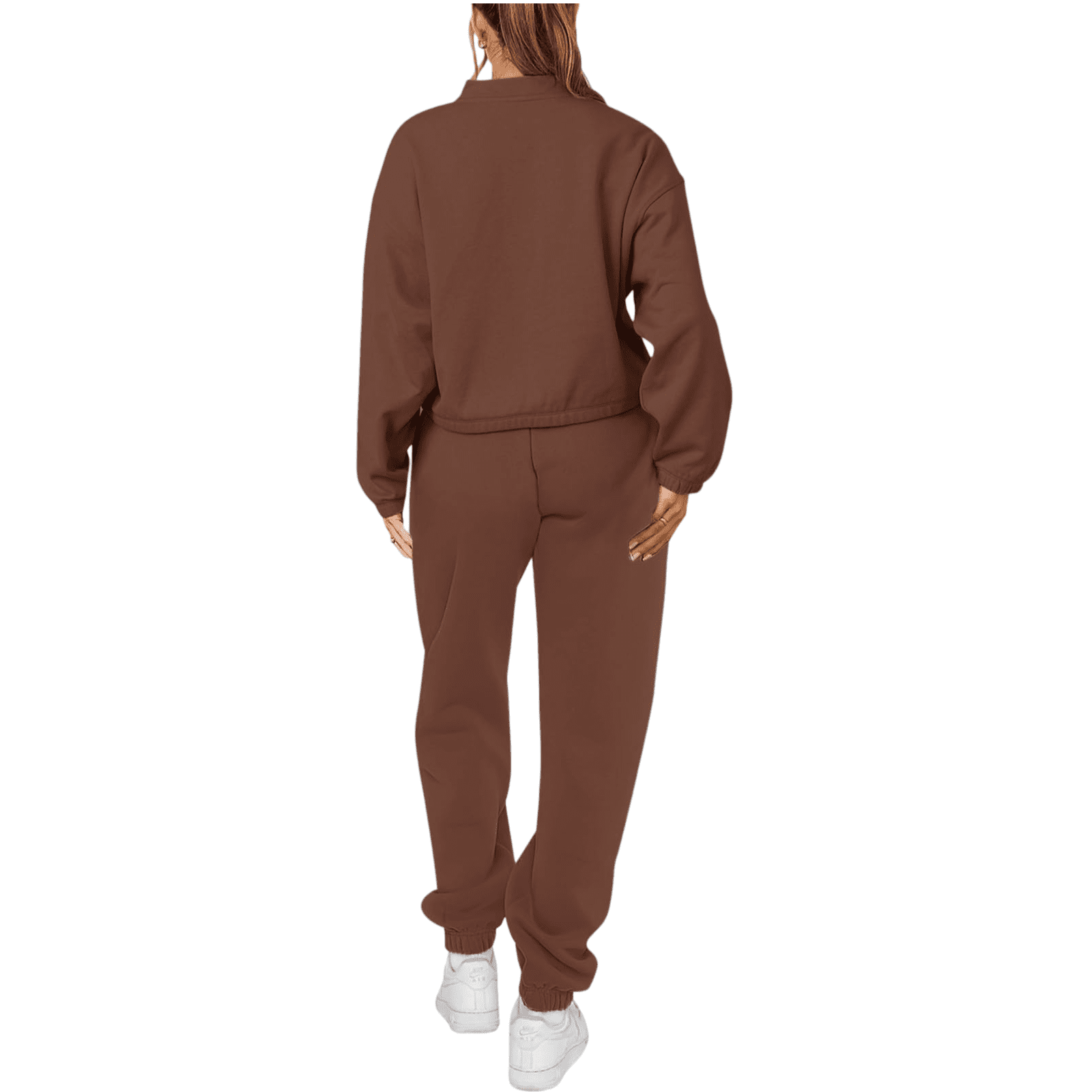 Nikcorp Ženski trenirka komplet pulover s polovično zadrgo in hlače, bombaž s flisom, športno eleganten, rjava, velikost XL
