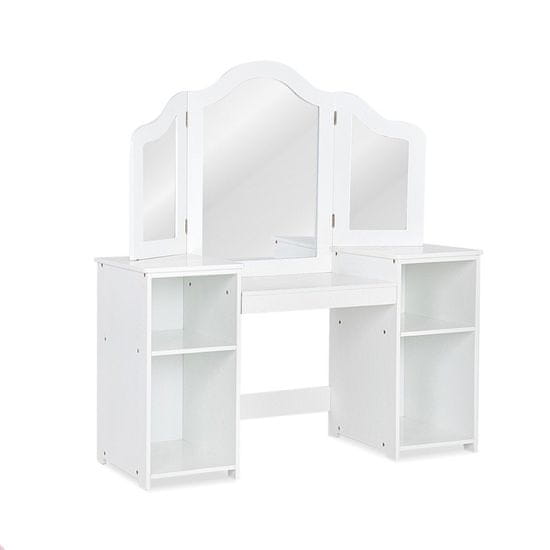Vsaka deklica sanja o svoji čudoviti kozmetični mizici, okrašeni z modno kozmetiko in nakitom. Naša otroška kozmetična mizica z ogledalom je zasnovana posebej za otroke in ne ponuja le igrače, temveč praktičen kos pohištva, ki odseva kozmetični kos odraslega. Ta očarljivi kozmetični umivalnik ima tridelno ogledalo, ki je hkrati veliko in lepo ter zagotavlja dovolj prostora za shranjevanje vseh njenih najljubših dodatkov in igrač. To je čudovit način za spodbujanje otrok, da razvijejo navado ohranjati svoj prostor urejen.