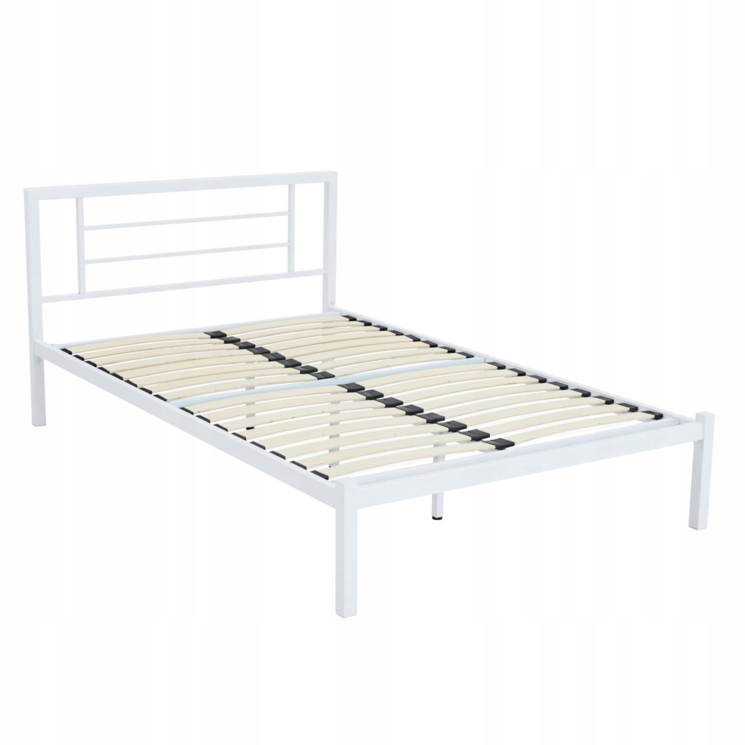 Bela kovinska POSTELJA z OKVIRJEM 120×200cm PREPROSTA za KAMPIRANJE