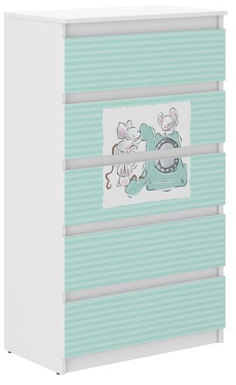• 5 prostornih predalov, popolnih za otroška oblačila ali manjše dodatke.