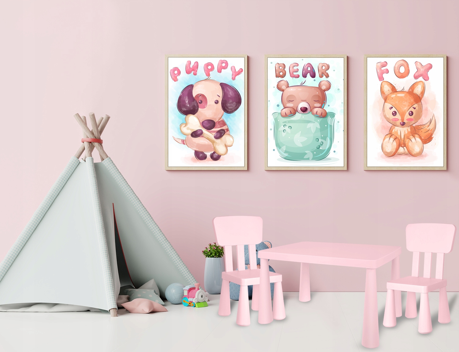 Široko uporabno – Slog tega kompleta je zelo preprost in primeren za vse vrste prostorov. Lahko ga postavite v otroško sobo, dnevno sobo, spalnico itd. Svetle barve in očarljiv dizajn so zelo privlačni za otroke.