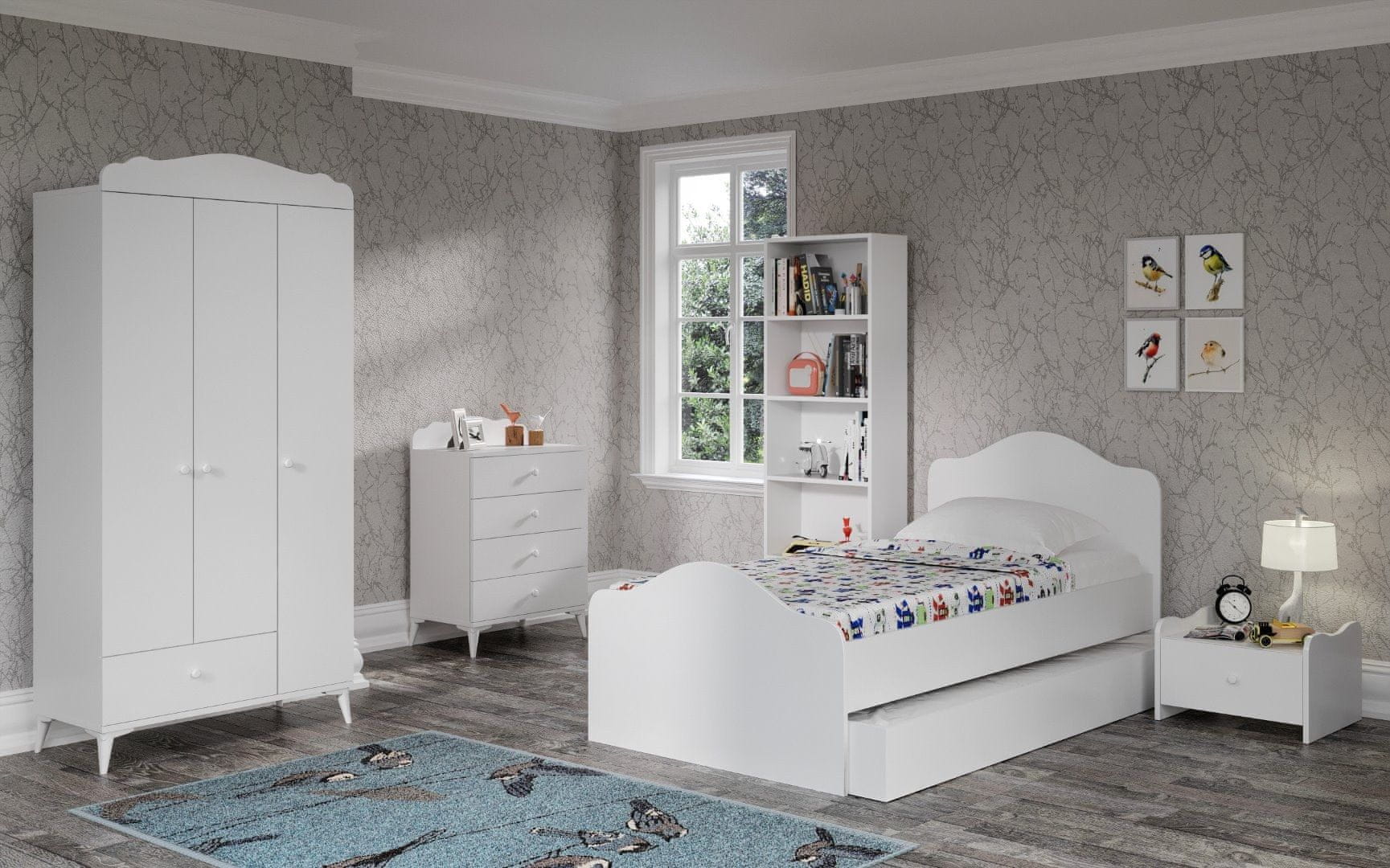 100 % MDF Debelina: 18 mm Širina: 195 cm Višina: 98 cm Globina: 95 cm Velikost postelje: Širina: 190 cm Globina: 90 cm Velikost spodnje postelje: Širina: 190 cm Globina: 90 cmPosteljnik: Širina: 65 cm Višina: 84 cm Globina: 40 cm Garderobna omara: Širina: 90 cm Višina: 184 cm Globina: 40 cm Nočna omarica: Širina: 48 cm Višina: 38 cm Globina: 35 cm Knjižna polica: Širina: 59,5 cm Višina: 167 cm Globina: 21 cm