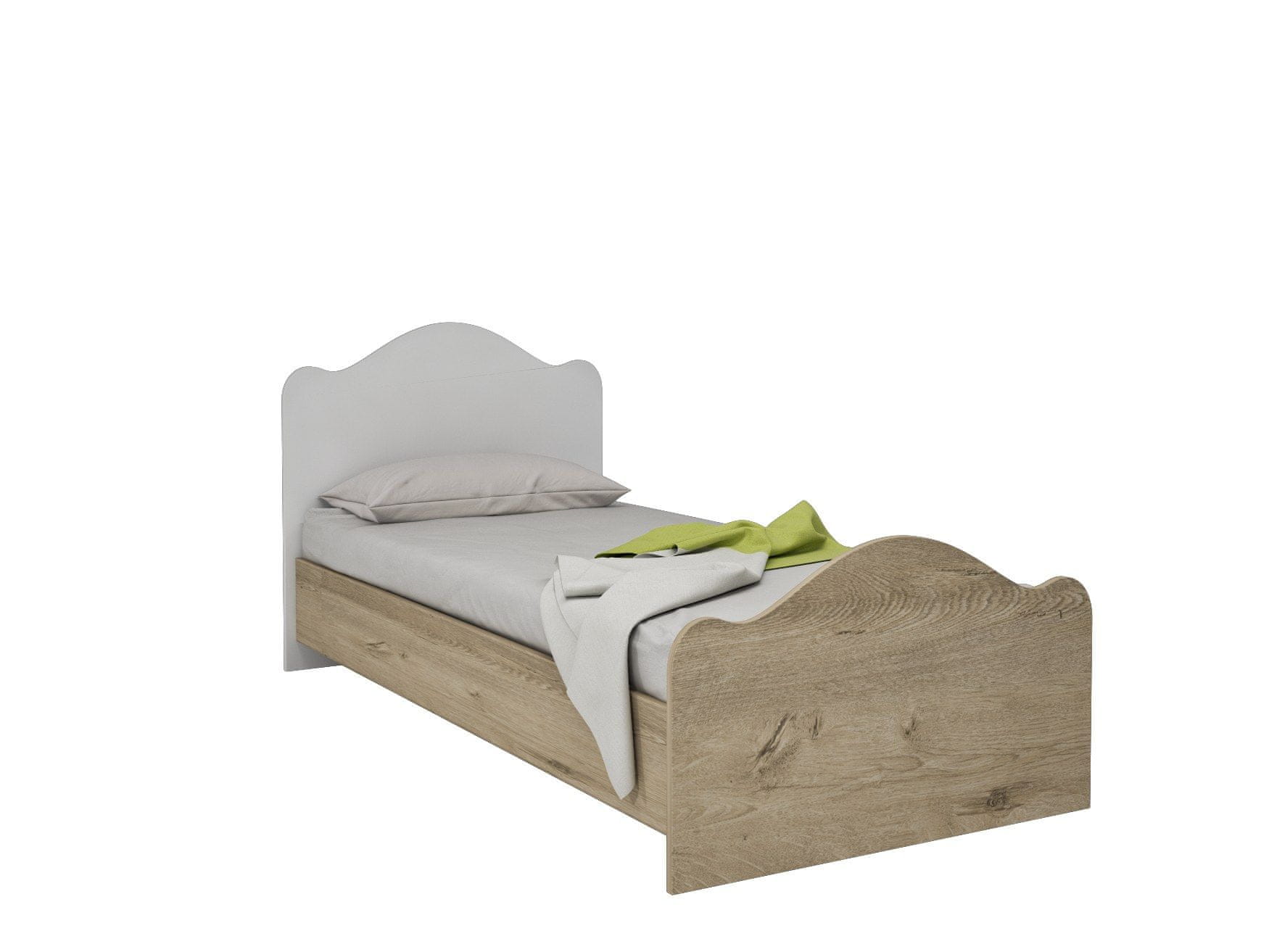 100 % MDF Debelina: 18 mm Širina: 195 cm Višina: 91 cm Globina: 95 cm Velikost postelje: Širina: 190 cm Globina: 90 cm Komoda: Širina: 65 cm Višina: 84 cm Globina: 40 cm Garderobna omara: širina: 40 cm, širina: 40 cm, širina: 40 cm, širina: 40 cm: Širina: 90 cm Višina: 184 cm Globina: 40 cm Nočna omarica: Širina: 48 cm Višina: 38 cm Globina: 35 cm Knjižna polica: Širina: 59,5 cm Višina: 167 cm Globina: 21 cm
