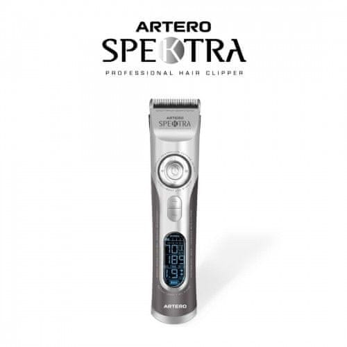 Strižnik za lase SPEKTRA ARTERO je dobavljen s kompletom dodatkov, vključno s standardnim rezilom in glavniki z različnimi višinami striženja (3, 6, 9, 12, 15, 18, 21, 25 mm). Komplet vključuje tudi enostavno polnilno bazo , krtačko za oljenje in čiščenje ter adapter za uporabo v kateri koli državi.