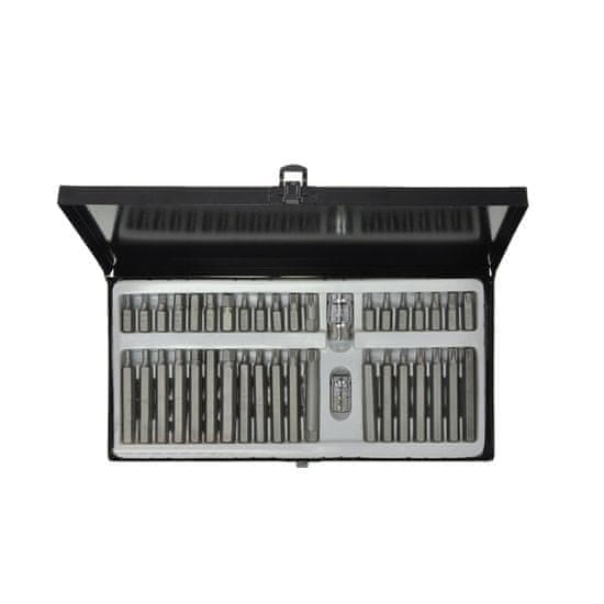 Profesionalni komplet nastavkov za odvijanje posebnih vijakov, kot je Torx spline imbus. Izdelano iz najkakovostnejšega legiranega orodnega jekla S2, ki ga odlikuje visoka trdota HRC 58–62, enakomerna drobnozrnata struktura materiala, odpornost na torzijo, visok zatezni moment – 21–8 Nm, odlično utrjevanje. Raznolikost nastavkov vam omogoča opravljanje številnih del v specializiranih mehaničnih in avtomobilskih servisih Vsebina paketa: 30 mm TORX nastavki: T20 T25 T30 T40 T45 T50 T55 75 mm TORX nastavki: T20 T25 T30 T40 T45 T50 T55 30 mm SPLINE nastavki: M5 M6 M8 M10 M12 SPLINE nastavki 75 mm: M5 M6 M8 M10 M12 30 mm HEX nastavki: H4 H5 H6 H7 H8 H10 H12 75 mm HEX nastavki (šestokotni): H4 H5 H6 H7 H8 H10 H12 Adapter z vtičnico 1/2" za 10 mm nastavki Adapter s 3/ vtičnico 8" za 10 mm nastavke. Kovček.