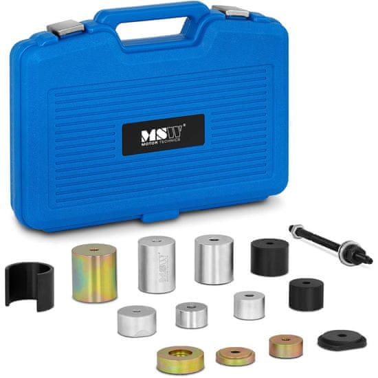 Šifra proizvajalca: 10061257 Ekstraktor puš MSW je set, ki vsebuje orodje za varno demontažo in ponovno montažo celotnega nabora puš in zadnjih ležajev številnih modelov BMW. Primerno za motorje E36/46, E38/39, E60/61, E31, E90/91. Orodja so izdelana iz jekla, prevlečenega z antikorozijsko prevleko. Vse je v priročnem kovčku. Odstrani Odstranitev in montaža krogličnih zglobov in gumijastih ležajev na vzdolžnih krakih pri: – Serija 3: E36, E46 in E83 – Serija 5: E39, E60, E61 in E70 (X5) – Serija 6: E63 in E64 – Serija 7: E38, E65, E66 in E67 – Serija 8: E31 – Z4: E85 in E86 Odstranitev in namestitev gumijastih ležajev diferenciala zadnje osi pri: – Serija 3: E36, E46 in E83 – Serija 8: E31 – Z4: E85 in E86 Odstranitev in namestitev gumijastih ležajev diferenciala zadnje osi mehanizma na: – Serija 1: E81 in E87 – Serija 3: E36, E46, E83, E90, E91, E92 in E93 – Serija 5: E60 in E61 – Serija 6: E63 in E64 – Serija 7: E38, E65, E66 in E67 – Serija 8: E31 – Z4: E85 in E86 – MINI Cooper S: R53 Lastnosti izdelka: – Vzdržljivo jeklo s premazom proti koroziji, – Za avtomobile BMW z E36/ 46, E38/39, E60/61, E31 motorji, E90/91 in diferencial zadnje preme, – Izdelek namenjen delavnicam in avtomobilskim servisom, – Ustrezno orodje za montažo/demontažo puš in ležajev zadnje preme, – Priročen plastični kovček. Tehnični parametri: – Kataloška številka – 10061257 – Stanje artikla – Novo – Model – MSW-SPS-14 – Material – Jeklo z antikorozijsko obdelavo – Kovček vključen – Da – Dimenzije (DxŠxV) – 42 × 29 × 8 cm – Teža – 6,65 kg – Dimenzije pošiljke (DxŠxV) – 43 × 32 × 8,6 cm – Teža pošiljke – 6,95 kg Set vsebuje: – Ekstraktor puše – BMW – Kovček – Uporabniški priročnik