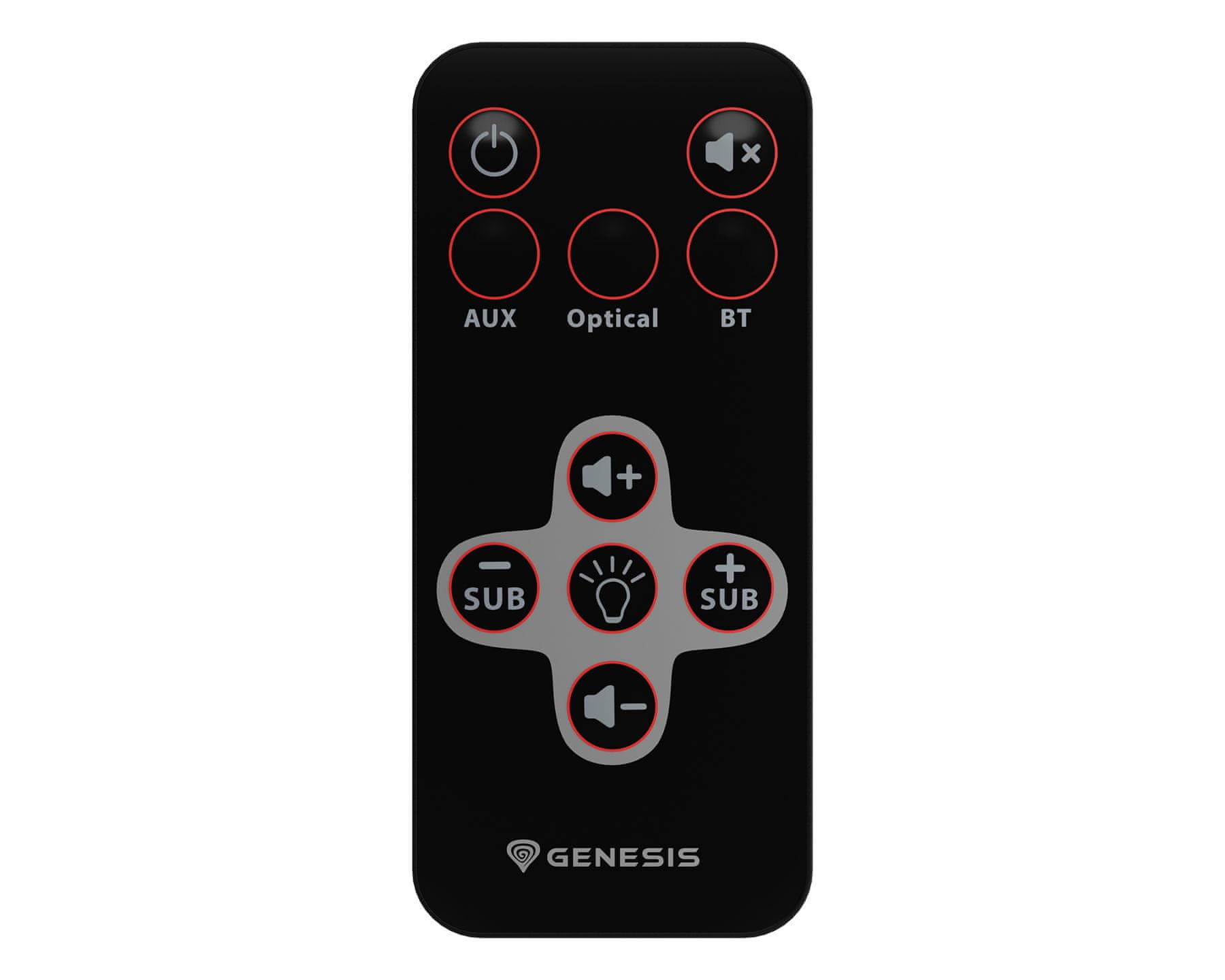 Genesis Helium 800 računalniški zvočniki, stereo 2.1, 60W RMS, RGB LED osvetlitev, Bluetooth 5.0, kontrolna plošča, daljinski upravljalnik, črni