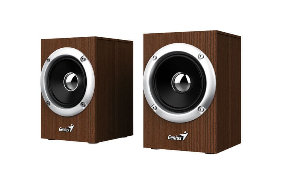 Genius SP-HF280 je kompakten 2.0 stereo zvočniški sistem z lesenim ohišjem, zasnovan za izboljšanje zvočne izkušnje pri poslušanju glasbe, gledanju filmov ali igranju iger. Leseno ohišje prispeva k boljši resonanci in kakovosti zvoka.
