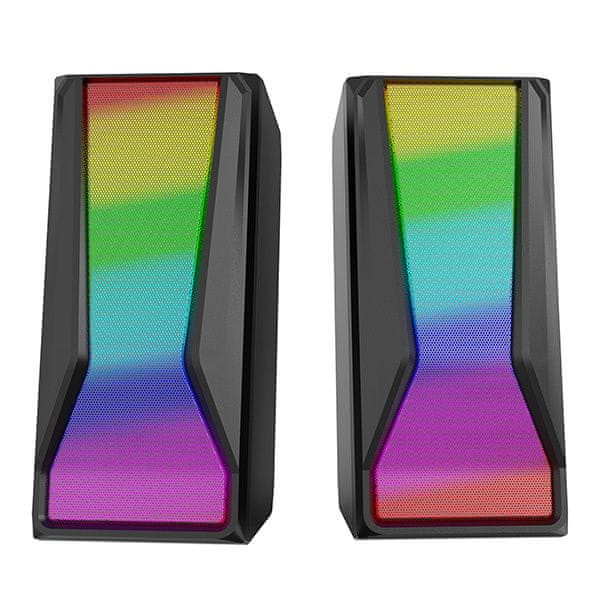 RGB osvetlitev: Celotna sprednja stran zvočnikov je opremljena z RGB osvetlitvijo, ki ponuja 6 različnih načinov osvetlitve. Te lahko enostavno izberete s pomočjo na dotik občutljivega nadzora, osvetlitev pa lahko tudi izklopite, če to želite.
