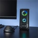 - Dinamična osvetlitev RGB poudarja elegantno zasnovo zvočnikov