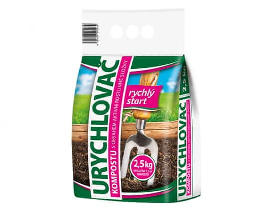 Pospeševalec komposta vsebuje aktivne rastlinske sestavine, ki znatno pospešijo proces kompostiranja. Za kompostiranje je primerna večina vrtnih in kuhinjskih organskih odpadkov. Posamezne plasti se razporedijo s pospeševalnikom v količini 200–400 g na 1 m2. Vsebina pakiranja zadostuje za 3 m3 komposta. Velikost pakiranja: 2,5 kg.