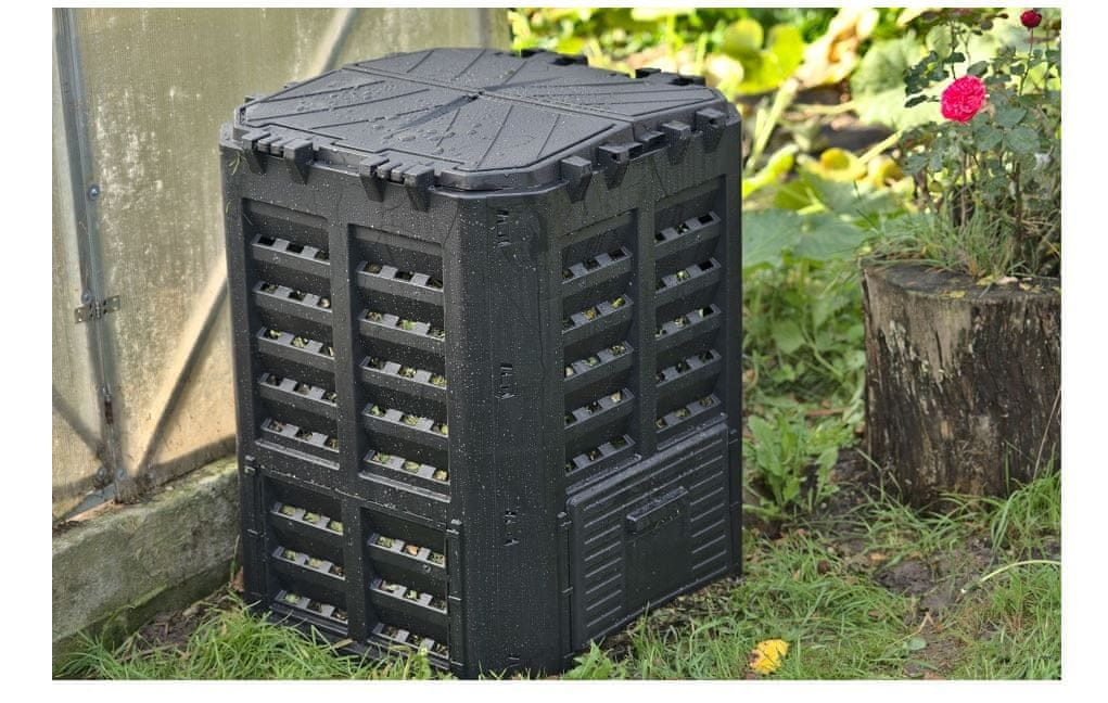 Kompostnik 300 l – črn proizvajalca Rojaplast. Odporen na vremenske razmere, UV sevanje in temperature -30 °C do 45 °C. Pokrov in stranska vrata za enostavno odstranjevanje komposta. Narejen iz recikliranega materiala. Celoten opis
