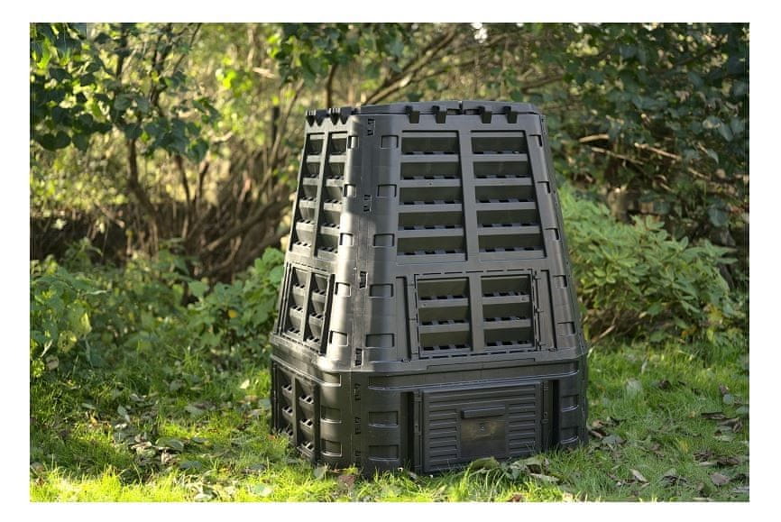 Kompostnik 740 l – črn proizvajalca Rojaplast. Odporen na vremenske razmere, UV sevanje in temperature -30 °C do 45 °C. Pokrov in stranska vrata za enostavno odstranjevanje komposta. Narejen iz recikliranega materiala. Celoten opis