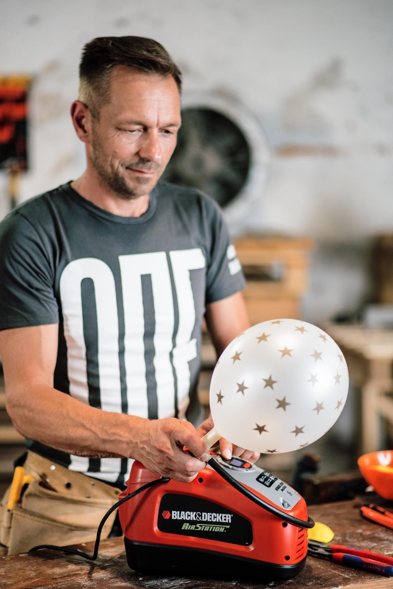 • ASI300 priznanega proizvajalca Black+Decker je kakovosten, cenovno ugoden in izjemno priročen kompresor. Predstavlja idealen pripomoček za napihovanje koles, igrač, žog, pnevmatik, manjših napihljivih bazenov itd.