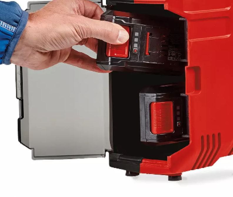 Baterijski kompresor Einhell TE-AC 36/8 Li OF Set-Solo je del zmogljive družine Power X-Change. Baterije z visokokakovostnimi litij-ionskimi baterijskimi celicami je mogoče kombinirati z vsemi člani družine Power X-Change. Akumulatorski kompresor v ohišju je majhen, a zmogljiv pomočnik za uporabo do največ 8 barov. Zato je primeren na primer za hitro polnjenje pnevmatik koles, avtomobilov in motornih koles. Tudi zahtevne pnevmatike za cestna kolesa niso težava zahvaljujoč zmogljivi črpalki. Ergonomska oblika in praktičen ročaj zagotavljata mobilnost in enostaven transport.