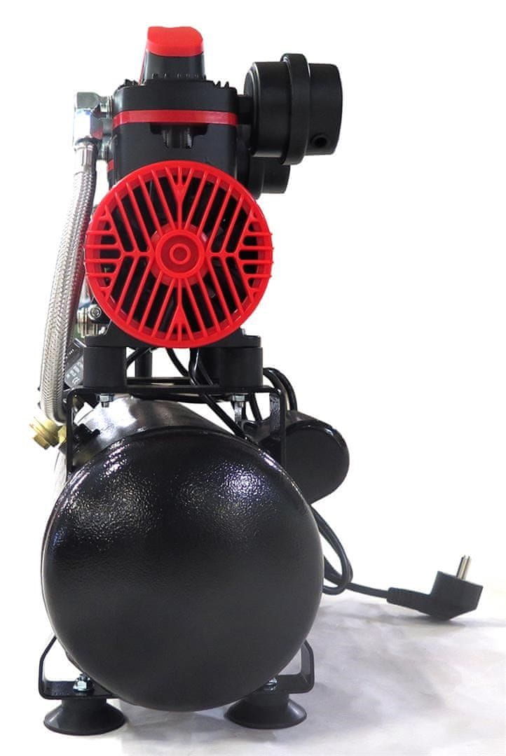 Ramda tihi brezoljni batni kompresor je idealna rešitev za uporabnike, ki potrebujejo čist in tih vir stisnjenega zraka. Z močjo 0,6 kW, pretokom zraka 60 l/min ter maksimalnim tlakom 8 bar je primeren za manjša orodja in natančna opravila. Zahvaljujoč brezoljni zasnovi in nizki ravni hrupa (63 dB) je odlična izbira za delo v zaprtih prostorih. Kompresor ima 9-litrsko tlačno posodo, enofazni priklop in maso le 15 kg.