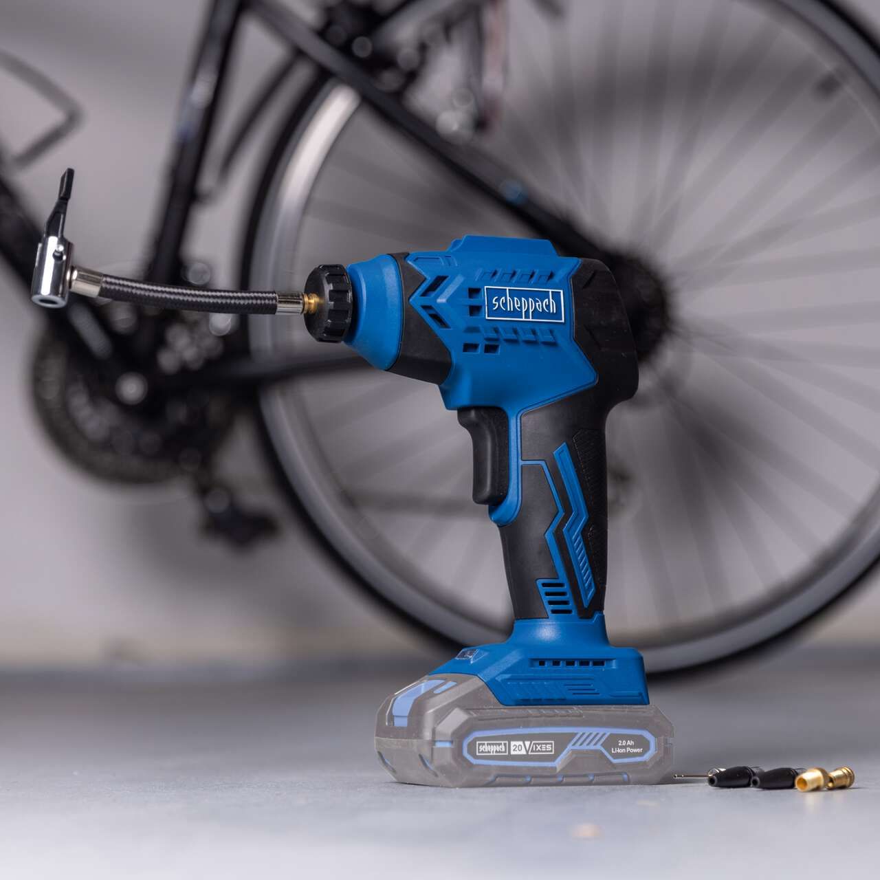 Akumulatorski ročni kompresor Scheppach je s svojim maksimalnim delovnim tlakom 7 bar priročen in zmogljiv pomočnik na poti, idealen za polnjenje kolesarskih pnevmatik, žog ali napihljivih blazin. LCD-zaslon prikazuje trenutni in prednastavljeni delovni tlak, ki ga lahko izberete v bar ali PSI enotah. Ob doseganju prednastavljenega tlaka se kompresor samodejno izklopi. Kompresor ponuja kompaktno in zmogljivo rešitev za brezžično svobodo, primerno za napihovanje pnevmatik, športnih žog in igrač.