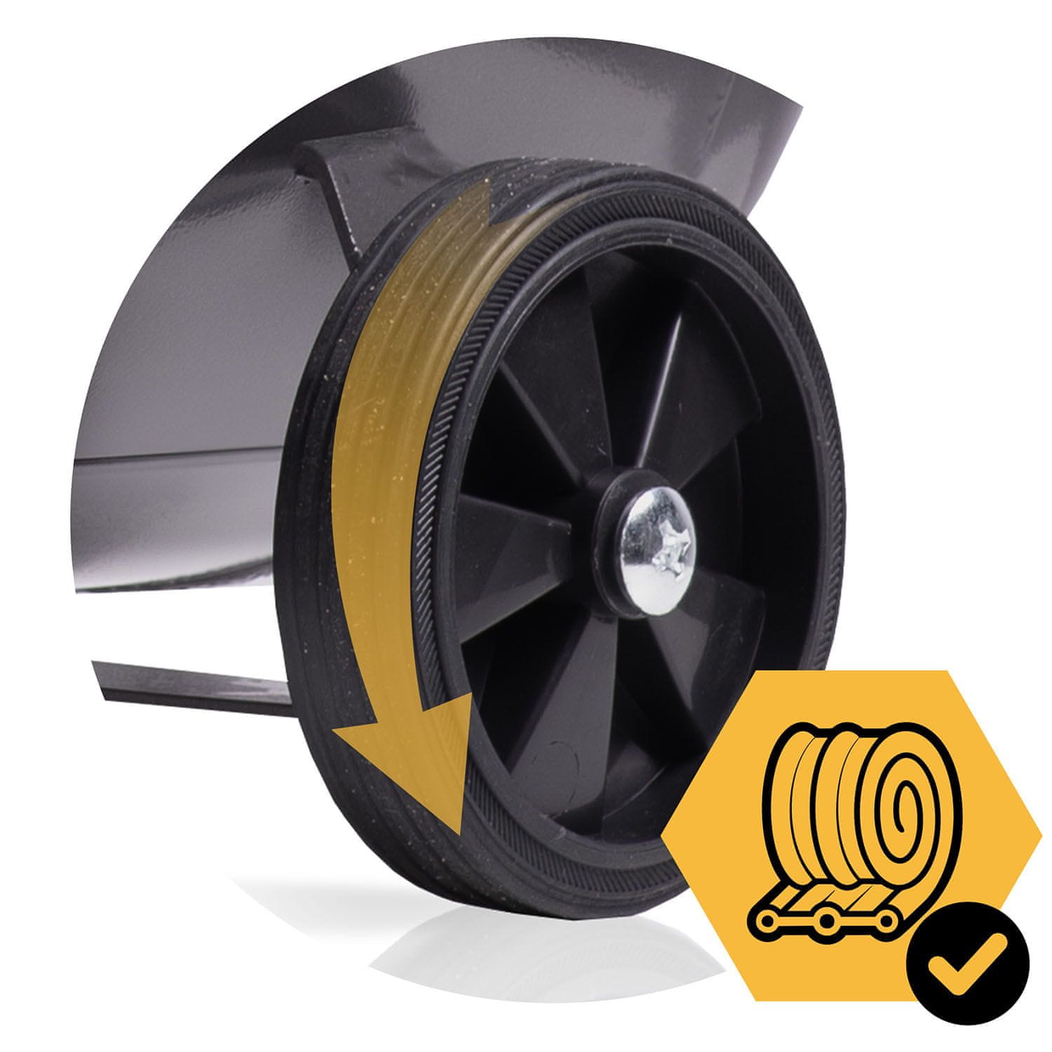 - Zahvaljujoč robustnim kolesom in udobnemu ročaju je kompresor izjemno enostaven za transport. Tudi s polnim rezervoarjem ga lahko enostavno premaknete kamor koli v delavnici, garaži ali na posestvu. Ergonomske rešitve zagotavljajo udobje uporabe in vam omogočajo, da opremo hitro postavite tja, kjer jo potrebujete.