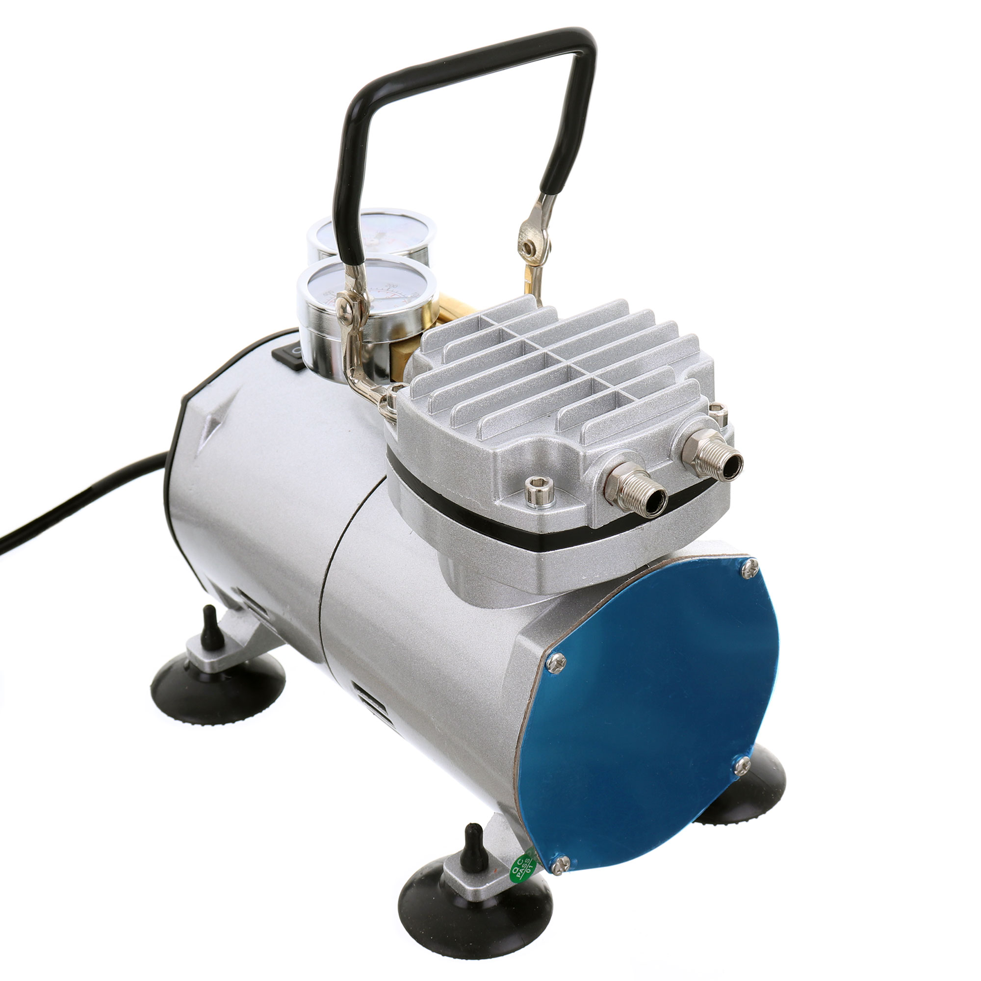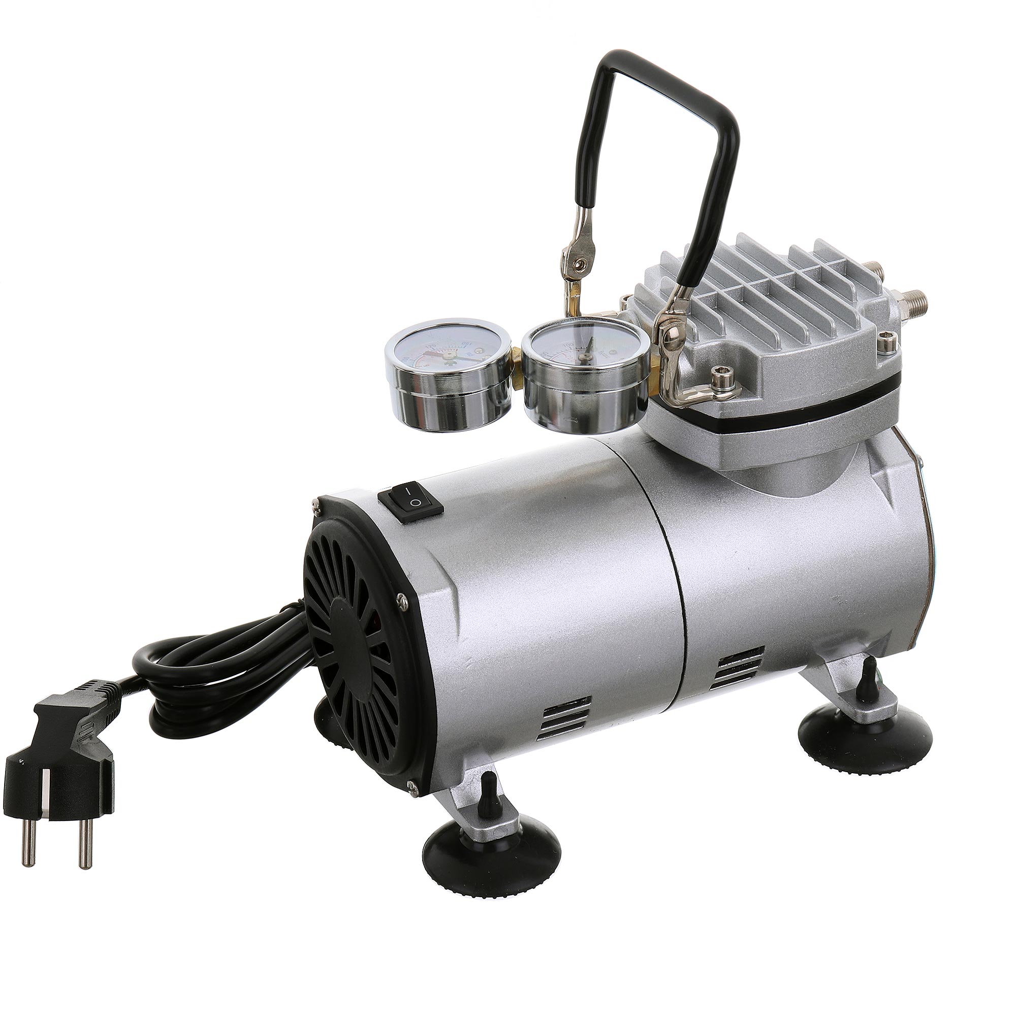 Profesionalni komplet – kompresor za airbrush in vakuumska črpalka – zasnovan za napajanje različnih vrst airbrush-ov in odsesavanje zraka. Uporablja se v modelarjenju in laboratorijih ter je idealen za napihovanje koles in žogic.
