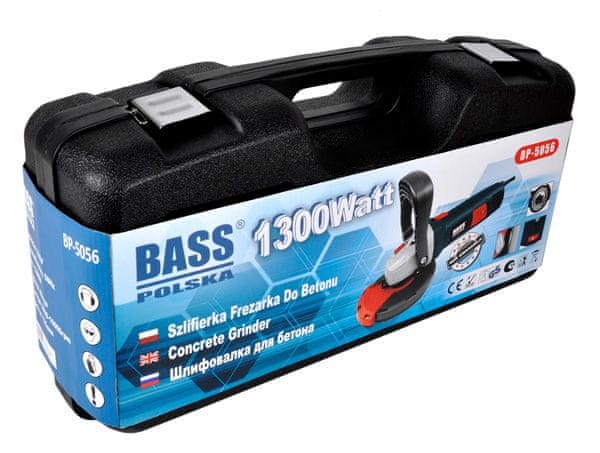 Visokokakovosten brusilnik za beton Bass Polska, zasnovan za odstranjevanje starih premazov, malt, lepil, oblog, izravnavo tal, zlasti na težko dostopnih mestih, kot so stenski ovinki, vogali, pod radiatorji, stopnice.