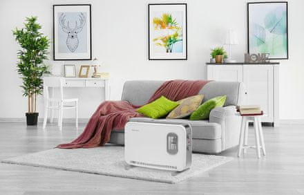 Hitro segreje zahtevan prostor in vzdržuje izbrano temperaturo zahvaljujoč termostatu, ki samodejno vklaplja in izklaplja grelni element.