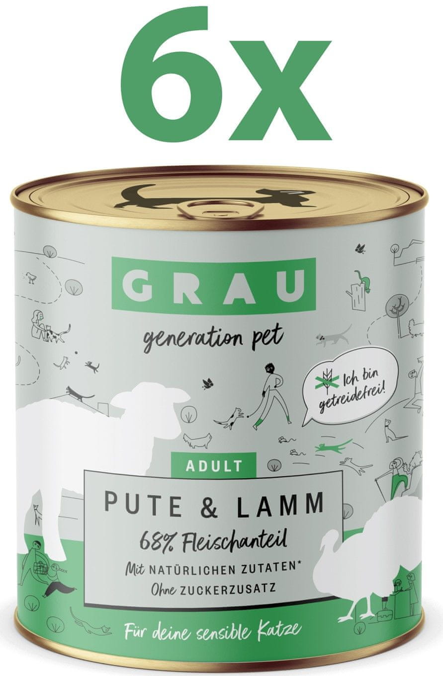 Grau GP Adult konzerva za mačke, puran & jagnje, 6 × 800 g