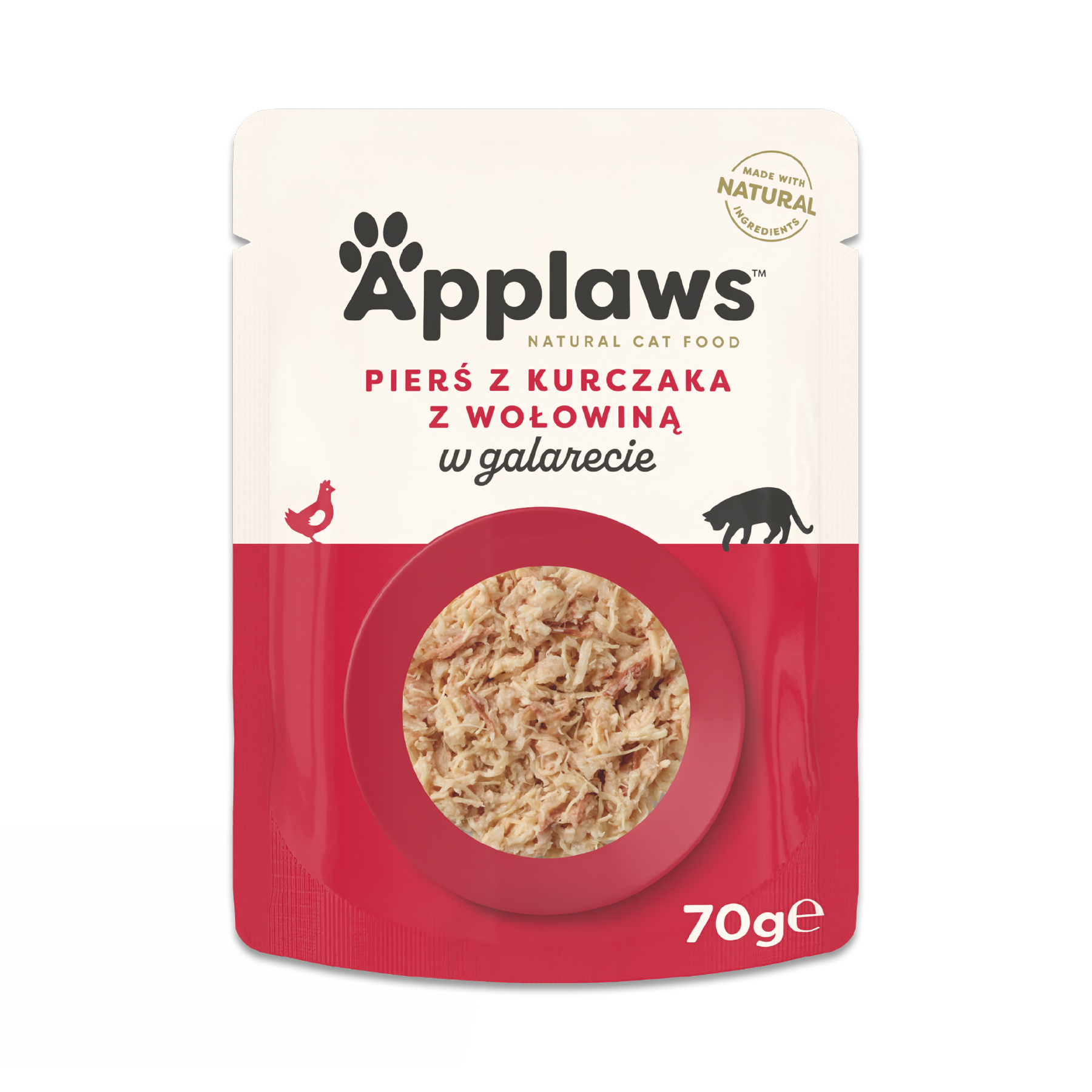 Piščančji file z govedino v želeju 70 g je naravna, dopolnilna hrana za odrasle mačke. Applaws vrečke s hrano za mačke so absolutna novost na trgu za hišne ljubljenčke. Vsebina najvišje kakovosti, ki vsebuje samo okusne, čiste koščke mesa. Vrečke ne vsebujejo konzervansov ali drugih dodatkov. To je popolno dopolnilo k Applaws suhi, visokoenergijski hrani, ki zagotavlja naravno in zdravo prehrano za vašo mačko.
