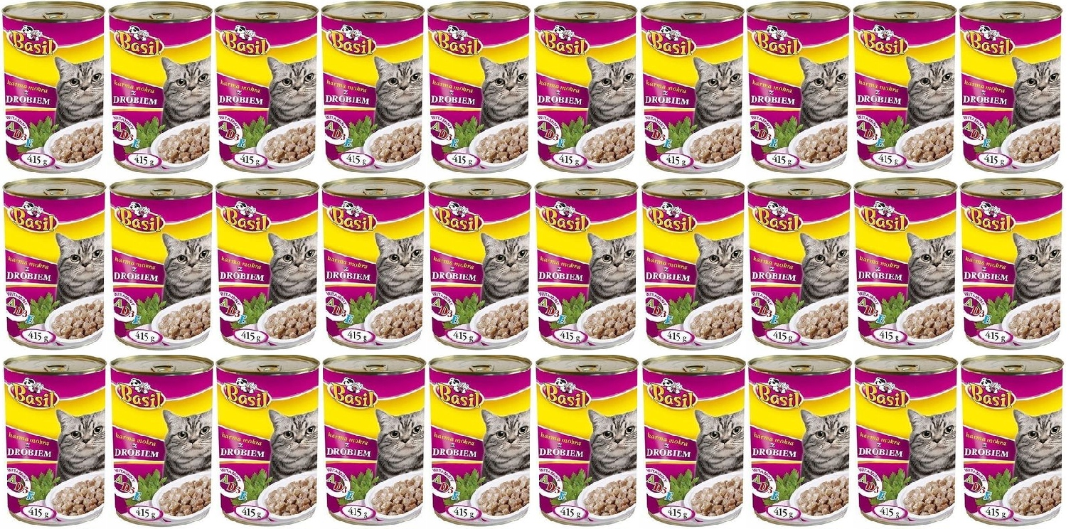 Bazilika 415g mačja hrana s perutnino, 30 kos, konzerva Celoten opis