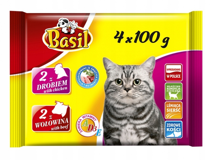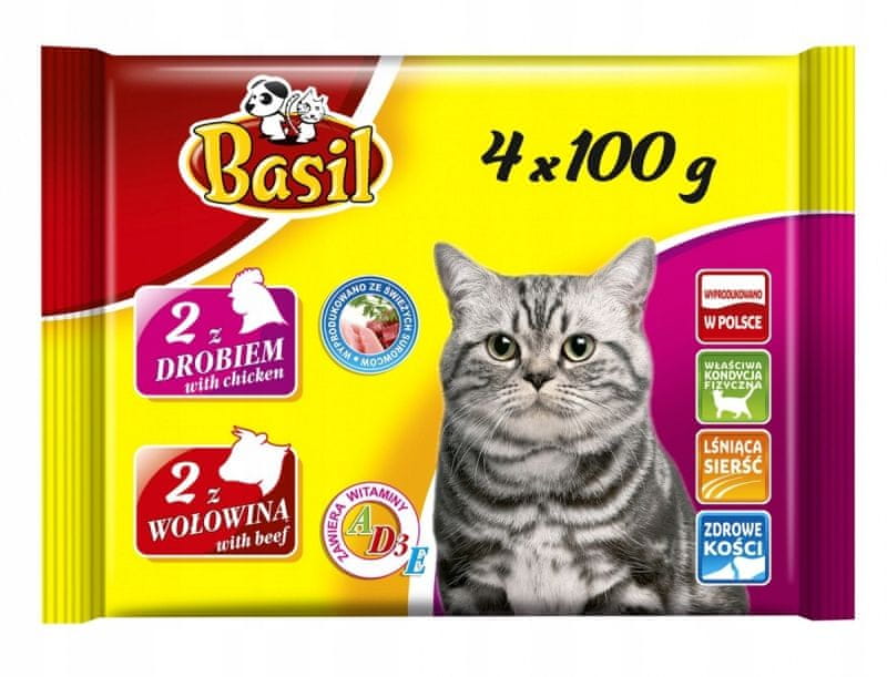 Bazilika mačja hrana v vrečkah goveja perutnina (4×100g) x1 Celoten opis