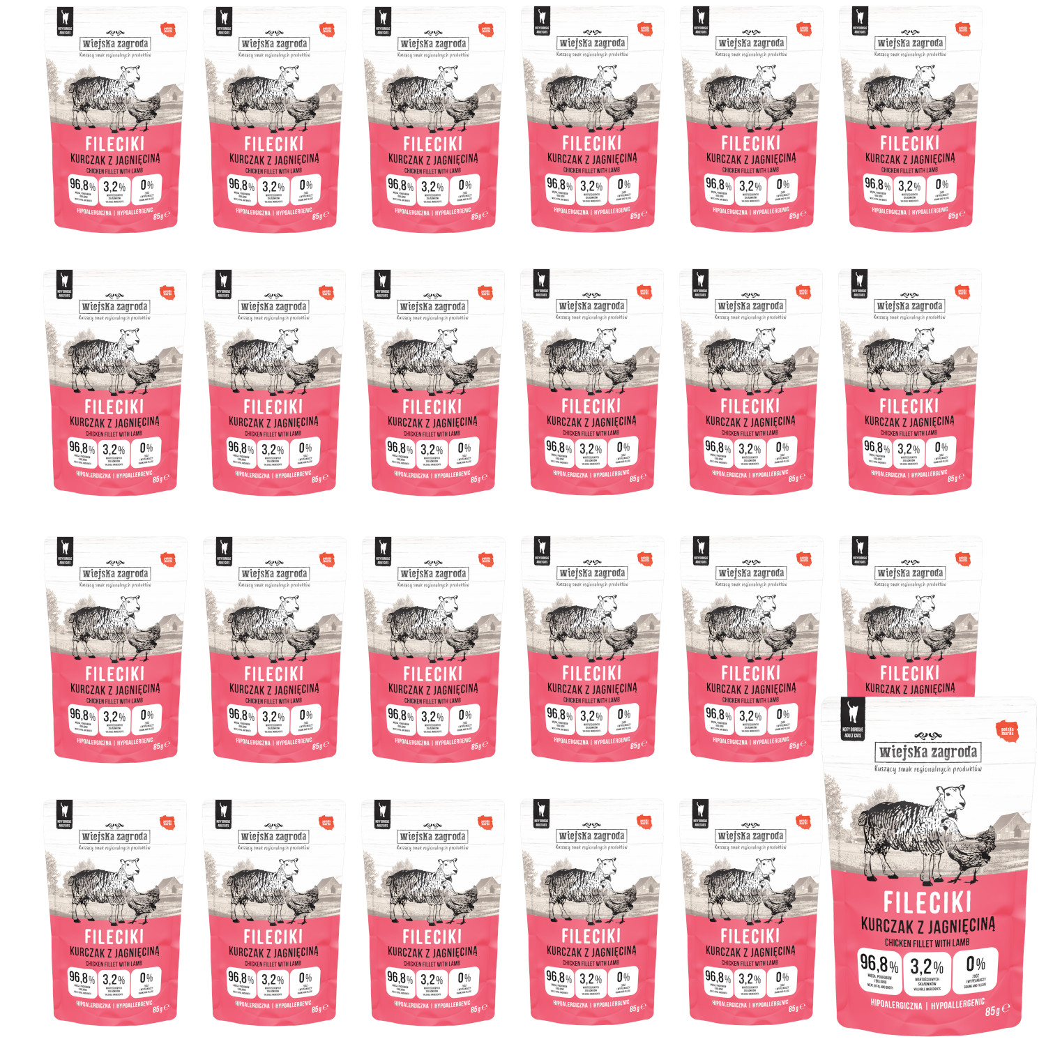 WIEJSKA ZAGRODA Mokra hrana za mačke s piščančjimi in jagnječjimi fileji 24 × 85 g