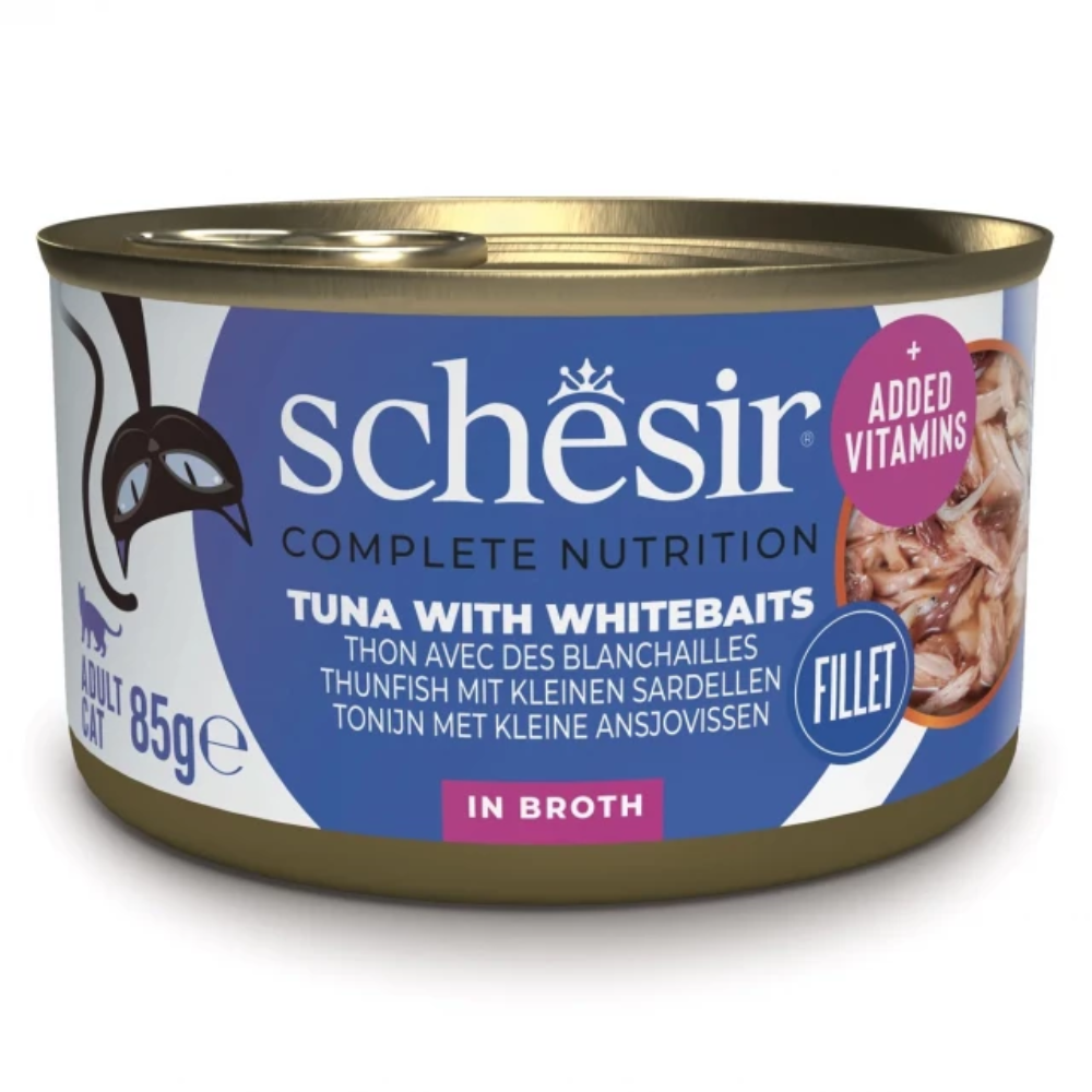SCHESIR Odrasla mokra hrana s tuno in inčuni v naravnem soku 85 g
