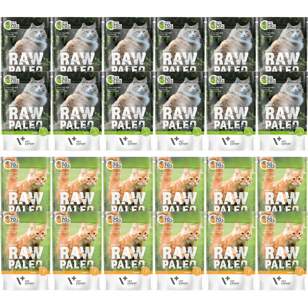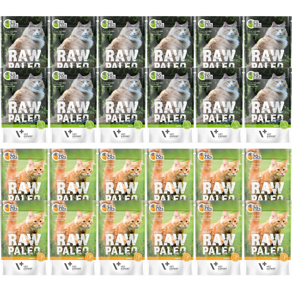 Mokra hrana za mačke VetExpert Raw Paleo za odrasle mačke MEŠANICA OKUSA 24 × 100 g Celoten opis