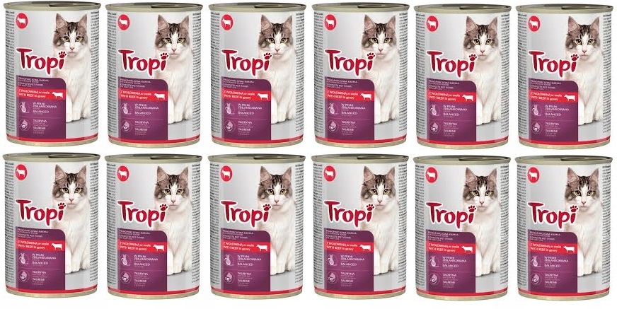 TROPI Mokra mačja hrana z govedino v omaki 12×415 g