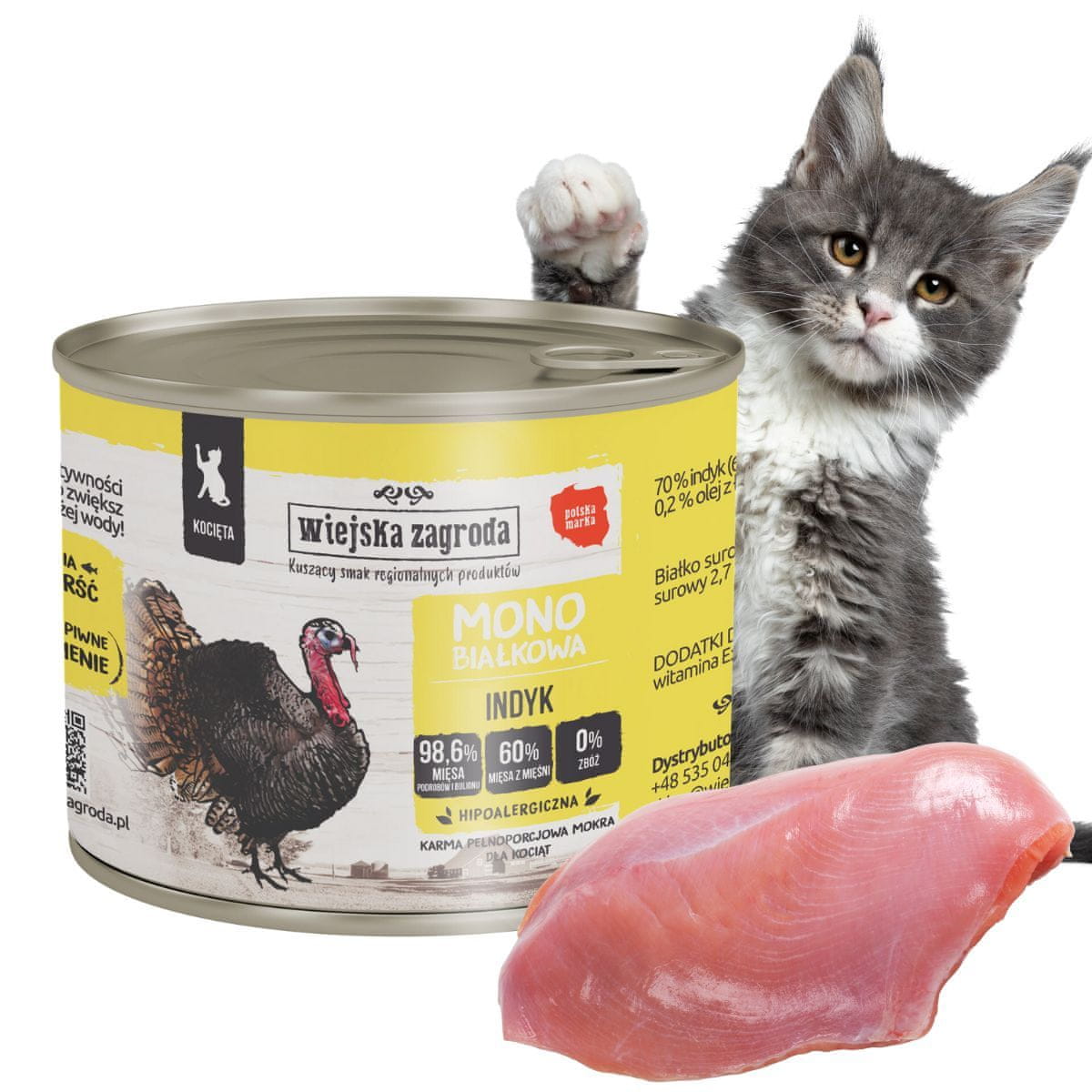 ✴️ SESTAVINE:70% puran (60% meso, 8% jetra, 2 % srca), 28,6 % puranje juhe, 1 % mineralov, 0,2 % lososovega olja, 0,1 % posušenega pivskega kvasa, 0,1 % izvlečka Yucca Mojave.