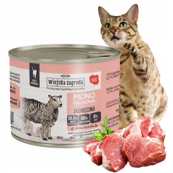 Monoproteinska mokra mačja hrana z JAGNJETINJO Celoten opis