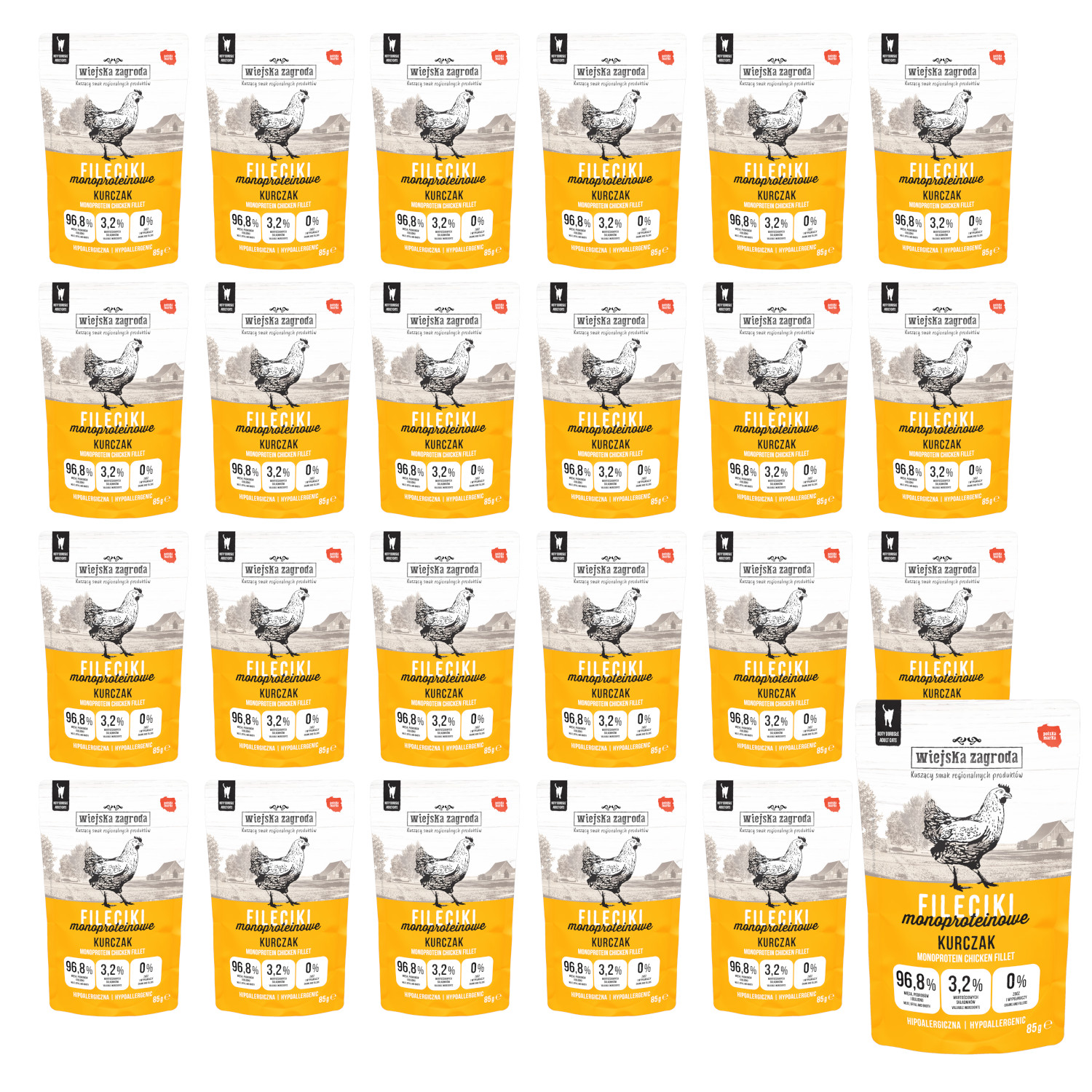 WIEJSKA ZAGRODA Monoproteinska mokra hrana za mačke z piščančjimi fileji 24 × 85 g