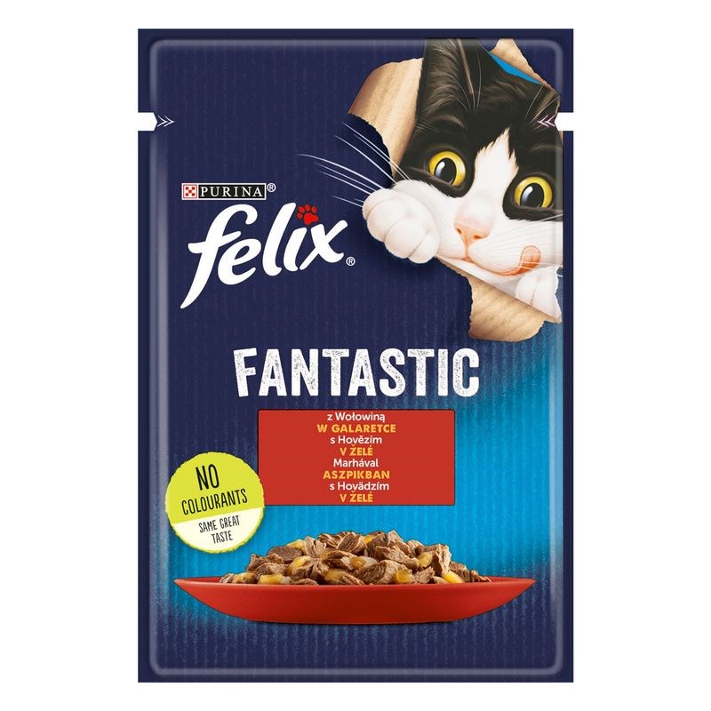 Komplet 120 vrečk mokre hrane za odrasle mačke. Mešanica okusov zagotavlja, da vaš ljubljenček ne bo monoton pri okusu hrane. To pomeni, da bo vaša mačka vedno z veseljem pojedla celoten obrok. Hrana Felix podpira splošno zdravje vaše mačke. Ne vsebuje konzervansov ali umetnih barvil.