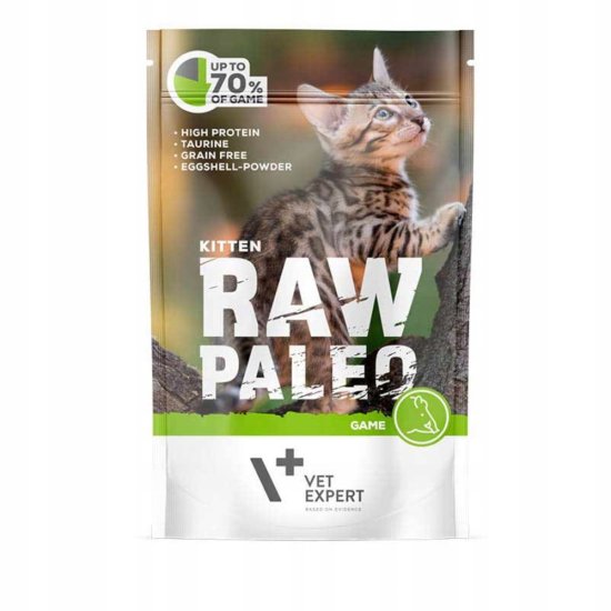 Surova paleo mokra hrana za mucke je popolna in uravnotežena vzdrževalna hrana, namenjena rastočim mačkam od odstavitve do 1. leta starosti. Hrana je obogatena z naravnim virom kalcija. Vse sestavine živalskega izvora, uporabljene pri njeni proizvodnji, so iz jelenovega mesa.