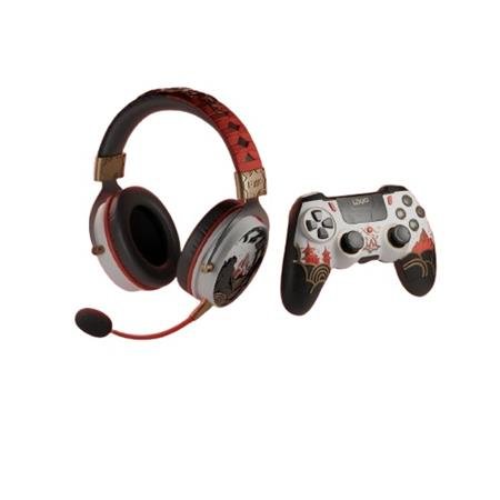 Vsebina paketa – paket igre Assassin's Creed Shadows za PC – brezžične igralne slušalke – brezžični krmilnik za PS4 in PC – ekskluzivni paket pergamenta