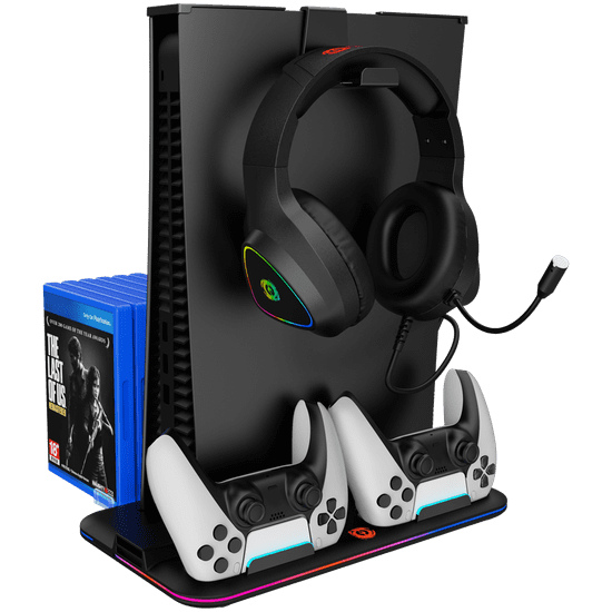 shumee CANYON CS-5 RGB večnamensko stojalo za PS5, 2-v-1 polnjenje in hlajenje, črno