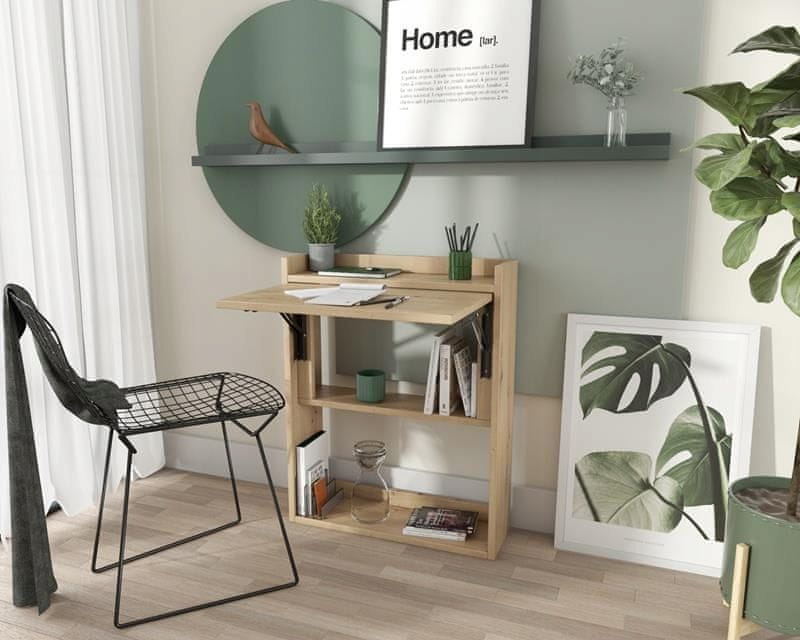 shumee Zložljiva stenska pisalna miza Artisan z omarico, polico in knjižno polico