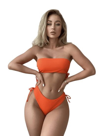 Nikcorp Ženske dvodelne kopalke bandeau bikini z visokim pasom, rebrast material, brez naramnic, oranžne barve, velikost M