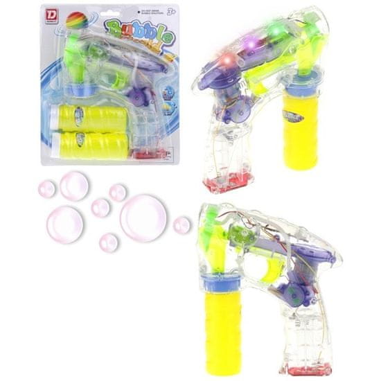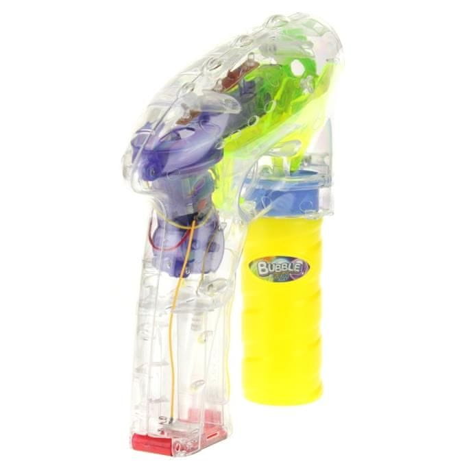 Ta čudovita pištola vam bo omogočila, da uživate v pogledu na desetine bleščečih mehurčkov. Posode za tekočino vam ni treba več privijati. Upravljanje pištole je otročje lahko. V posodo nalijte tekočino, ki je priložena kompletu, pritisnite na sprožilec in to je to, pištola spušča mehurčke. Pištola ima štiri diode, ki svetijo v različnih barvah.