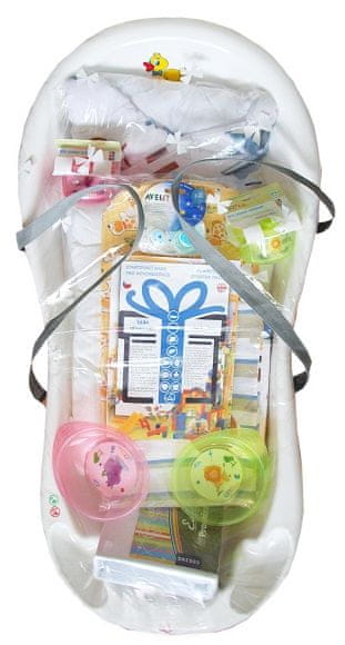 Komplet za dojenčke vsebuje vse pomembne stvari za bodoče mame: otroško kopel, brisačo, odejo, stekenice,… Idealno za darilo! Artikel ima odprto embalažo in je bil lahko uporabljen. Celoten opis