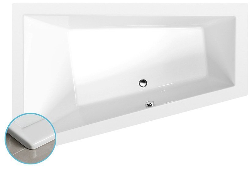 POLYSAN Bela asimetrična akrilna kopalna kad SLIM 180x120 cm - vgradna z nizkim robom