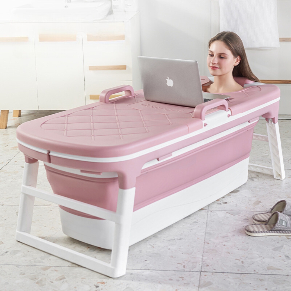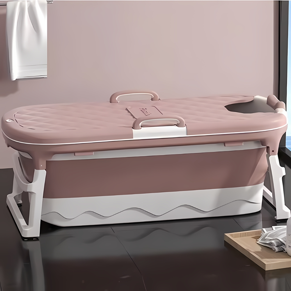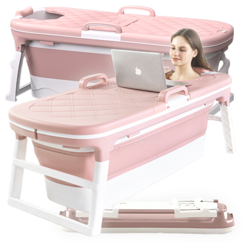 ✨ VELIKA ZLOŽLJIVA PRENOSNA KAD ZA ODRASLE S POKROVOM 138×62 ROZA DOMAČI SPA ✨